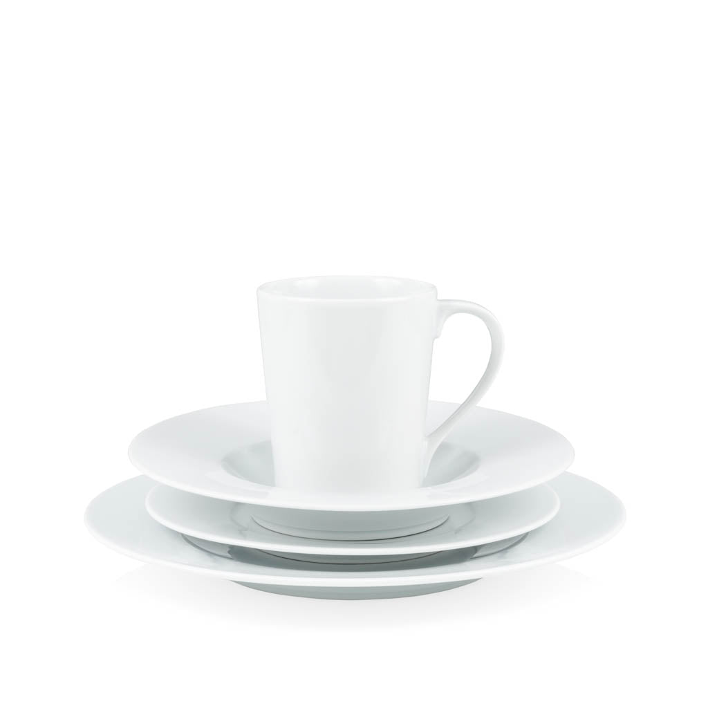 Our Classic Porcelain Dinnerware stands out with its clean, crisp lines and modern aesthetic. We've reimagined porcelain dinnerware for contemporary table settings, drawing inspiration from traditional bone china silhouettes. The Classic Porcelain Mug is a sophisticated way to enjoy tea, coffee, and a delicious Hot Toddy. Crafted in Portugal, the high firing temperature ensures long-lasting resilience.