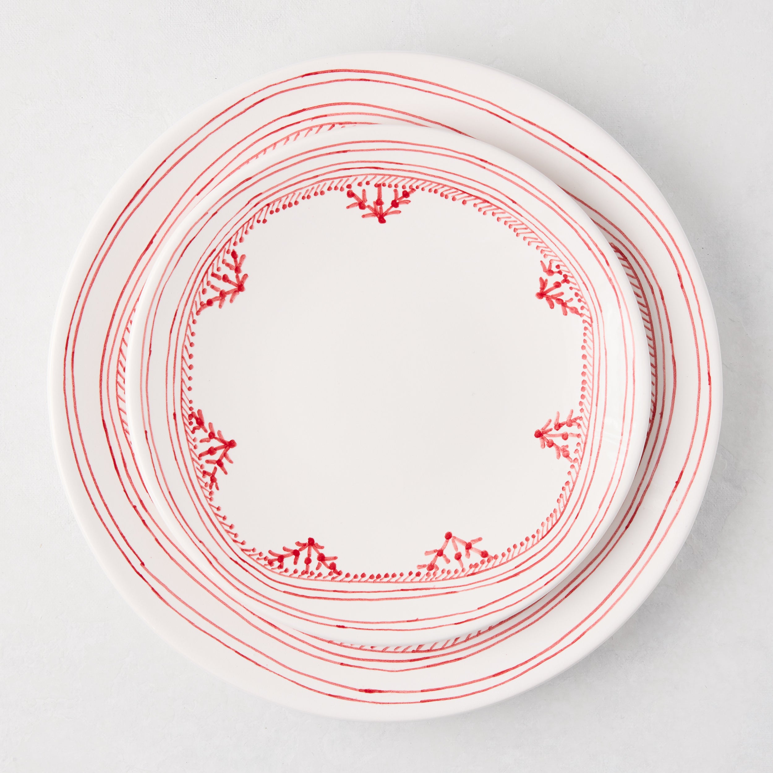 Made in Italy, each plate is intricately hand-painted, unique, and made for mixing and matching. With a colorful pattern around the border, the Red Painted Border Dinner Plate will bring a casual style to your table. Perfect for everyday entertaining.