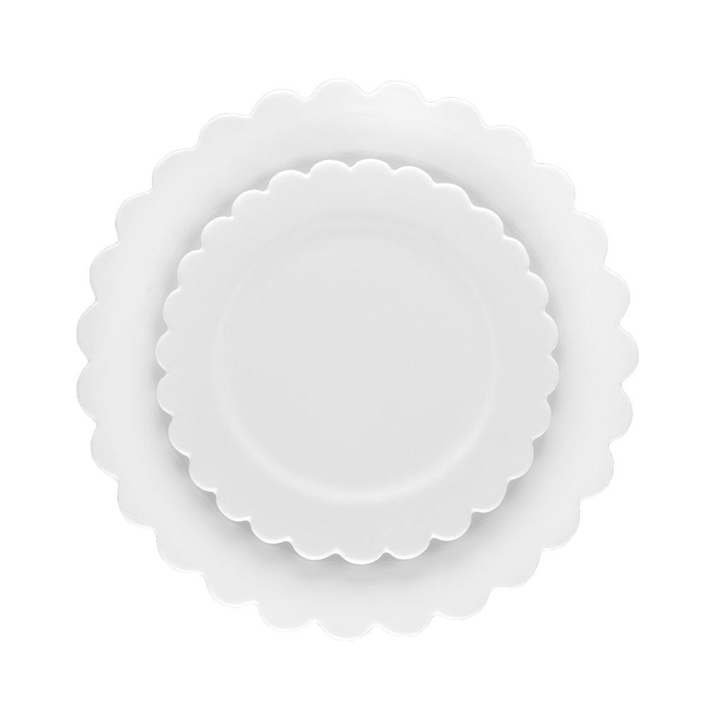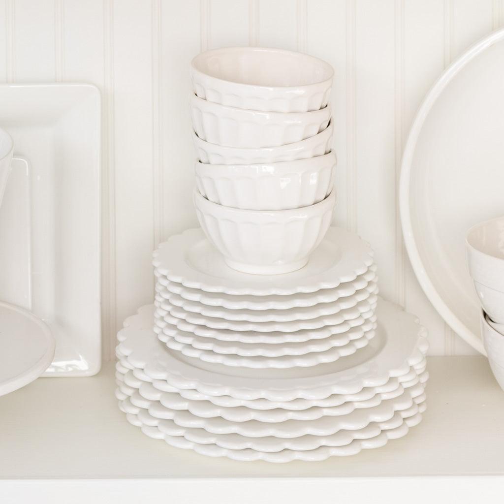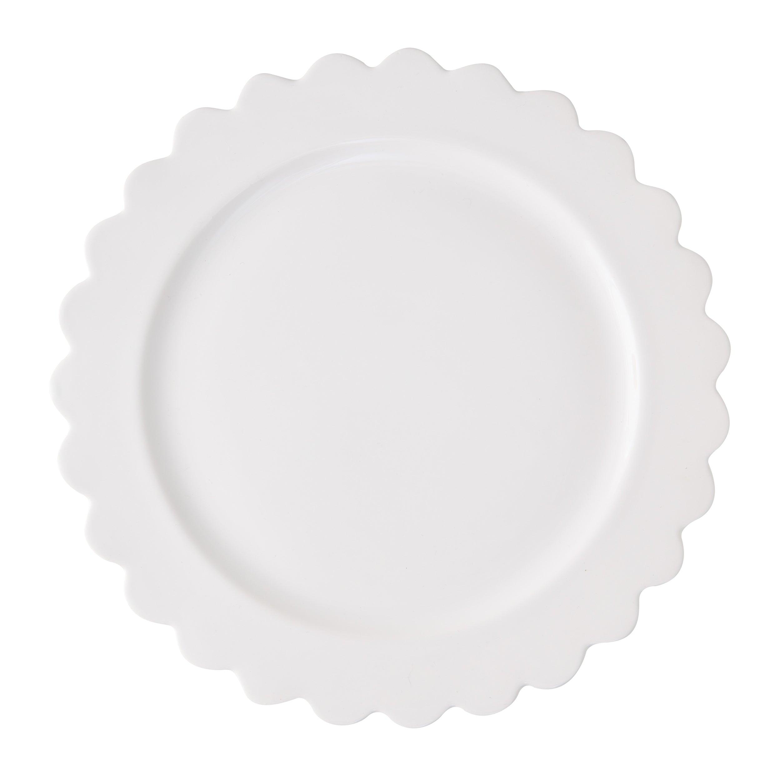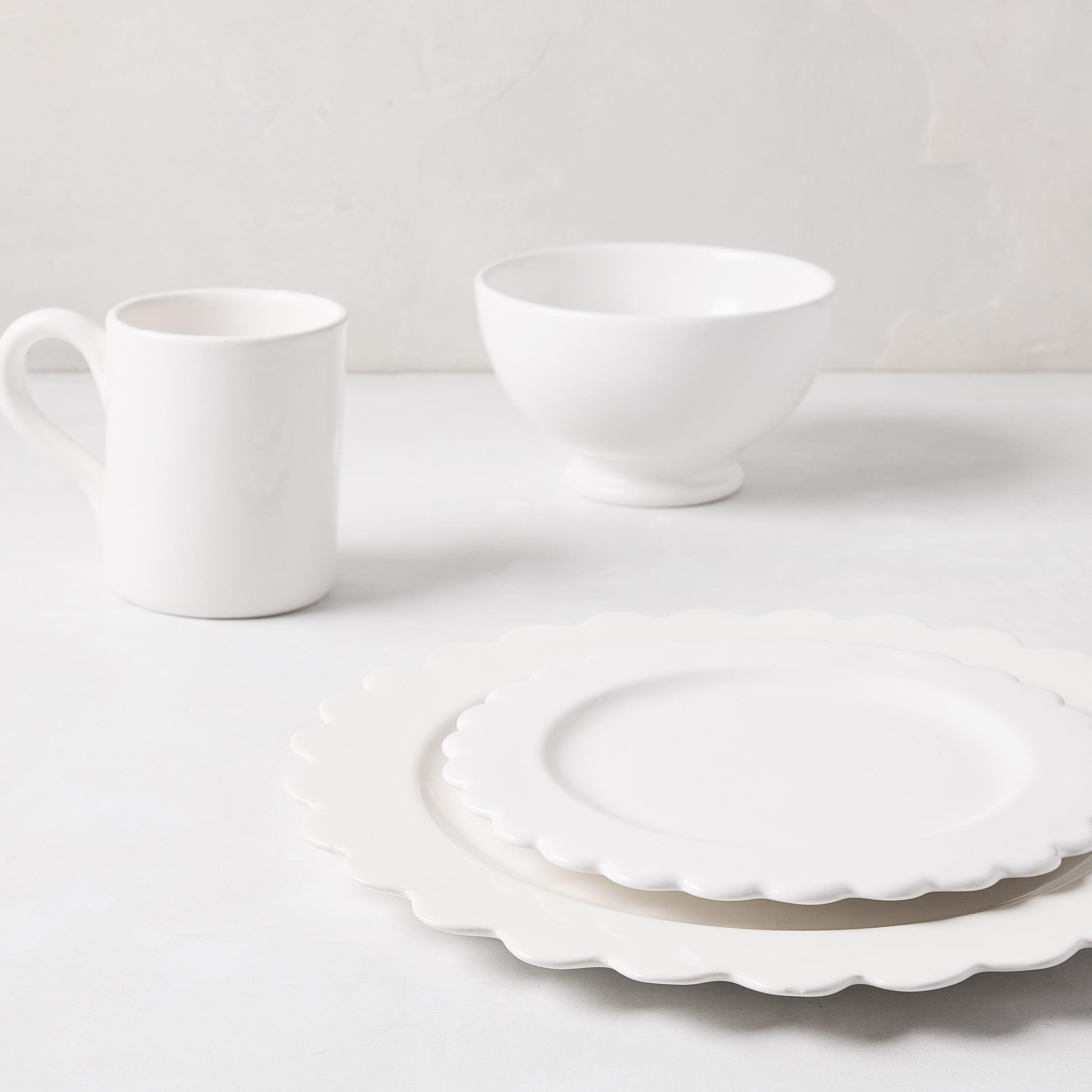 Introducing our Scalloped Dinner Plate. With our Scalloped Salad Plate's popularity, we decided to go bigger and bring you a dinner plate size. It can be layered easily with pieces from our whiteware collection or as a stand-alone collection. Crafted in Italy of high-fired ceramic, the scallop design is minimal and elegant with a hint of Southern sophistication.