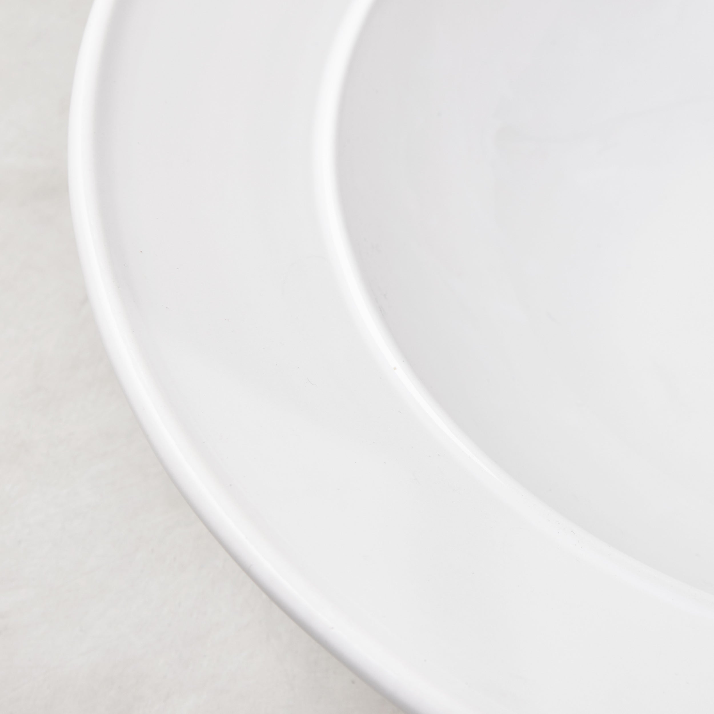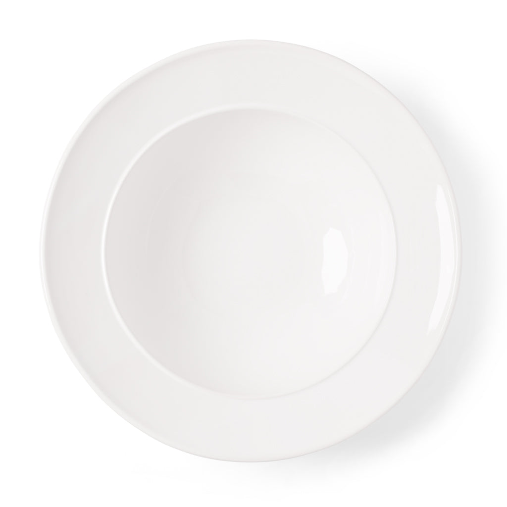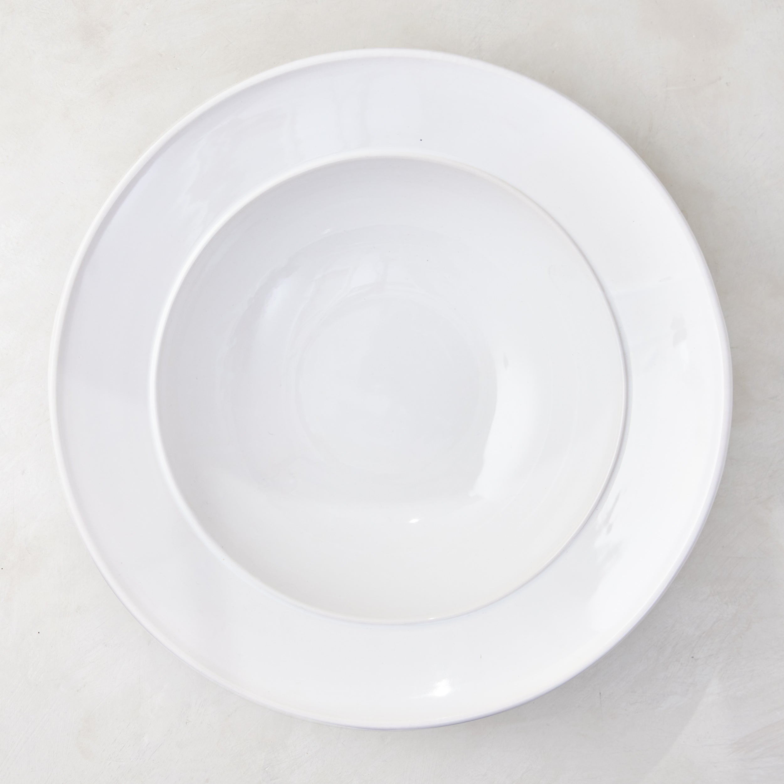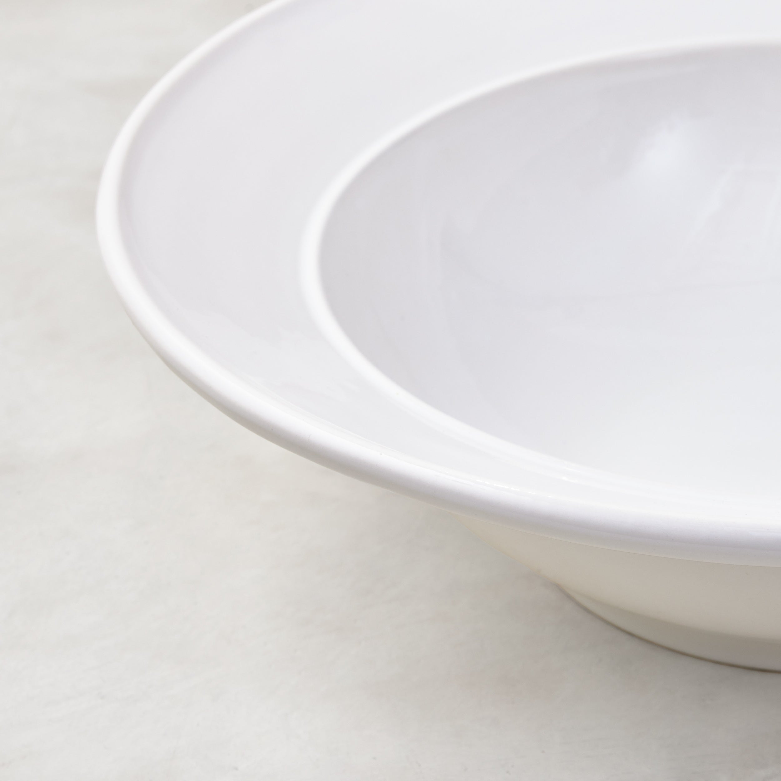 Embrace the beauty in simplicity. The Bolinas Round Ceramic Serving Bowl with Trim blends functionality with clean lines and a sleek design. The raised edge adds sophistication, dimension, depth and detail to your collection. Handmade in Italy in our signature white glaze. Exclusively Hudson Grace.