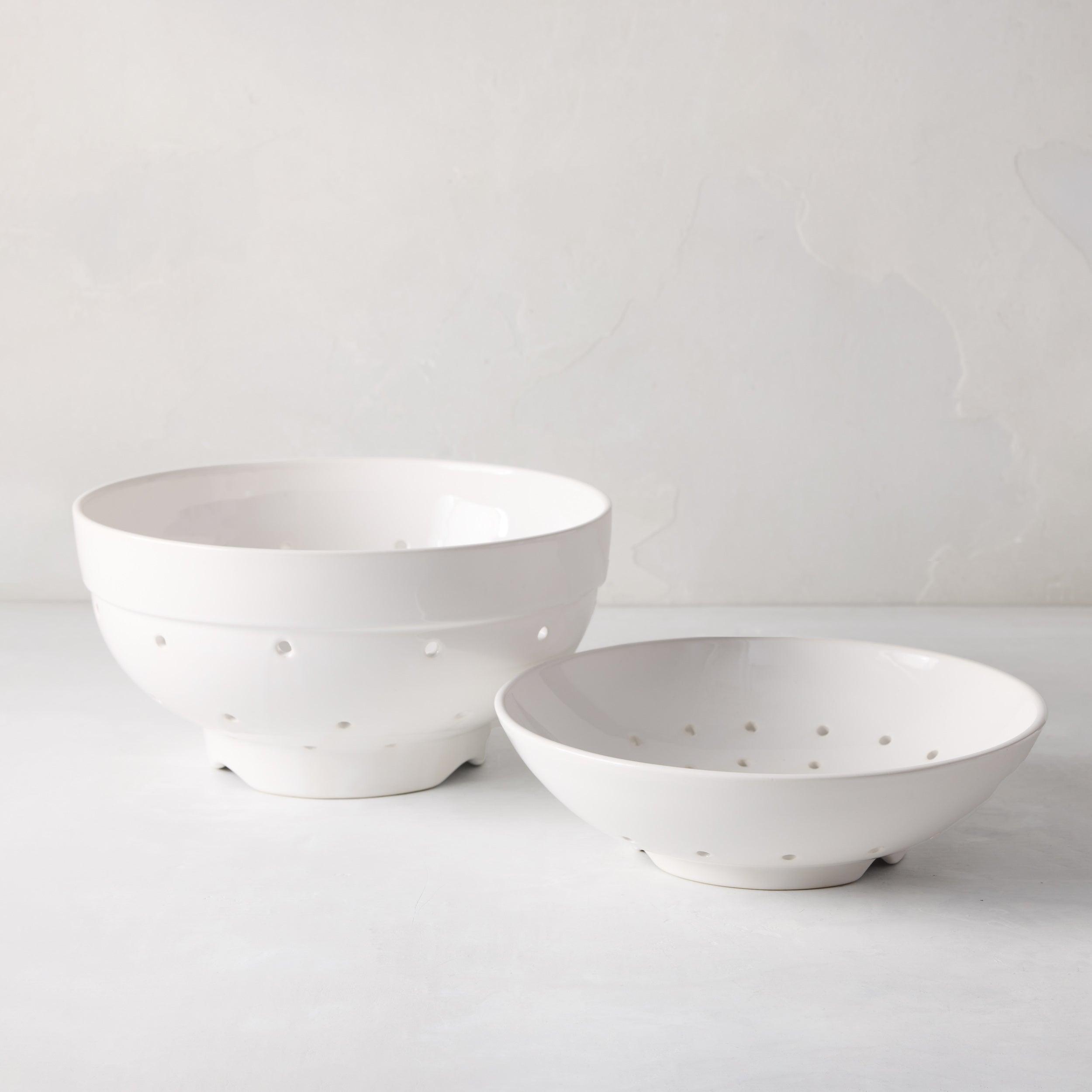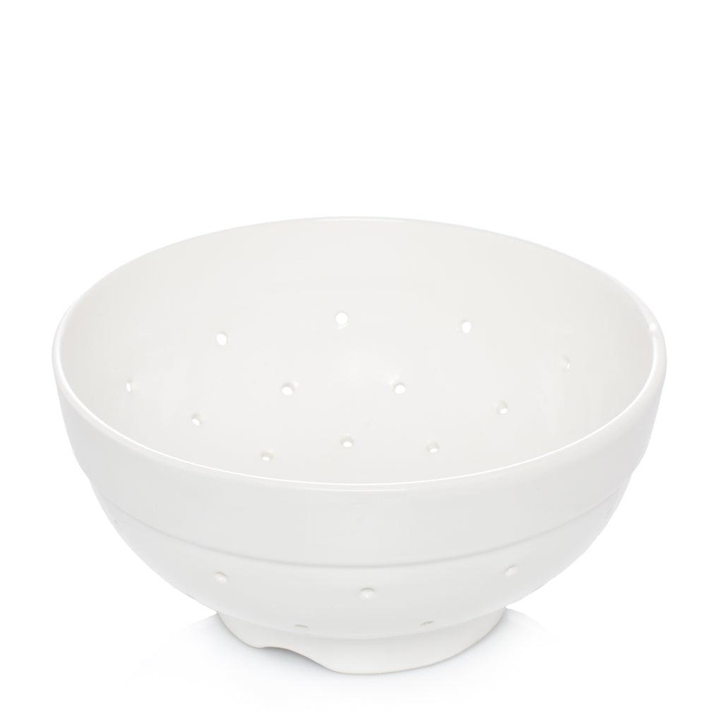 Exclusively Hudson Grace. Our vintage-inspired colander assists in gently washing vegetables and straining pasta in style. Handmade of ceramic in Italy and finished in our signature white glaze.