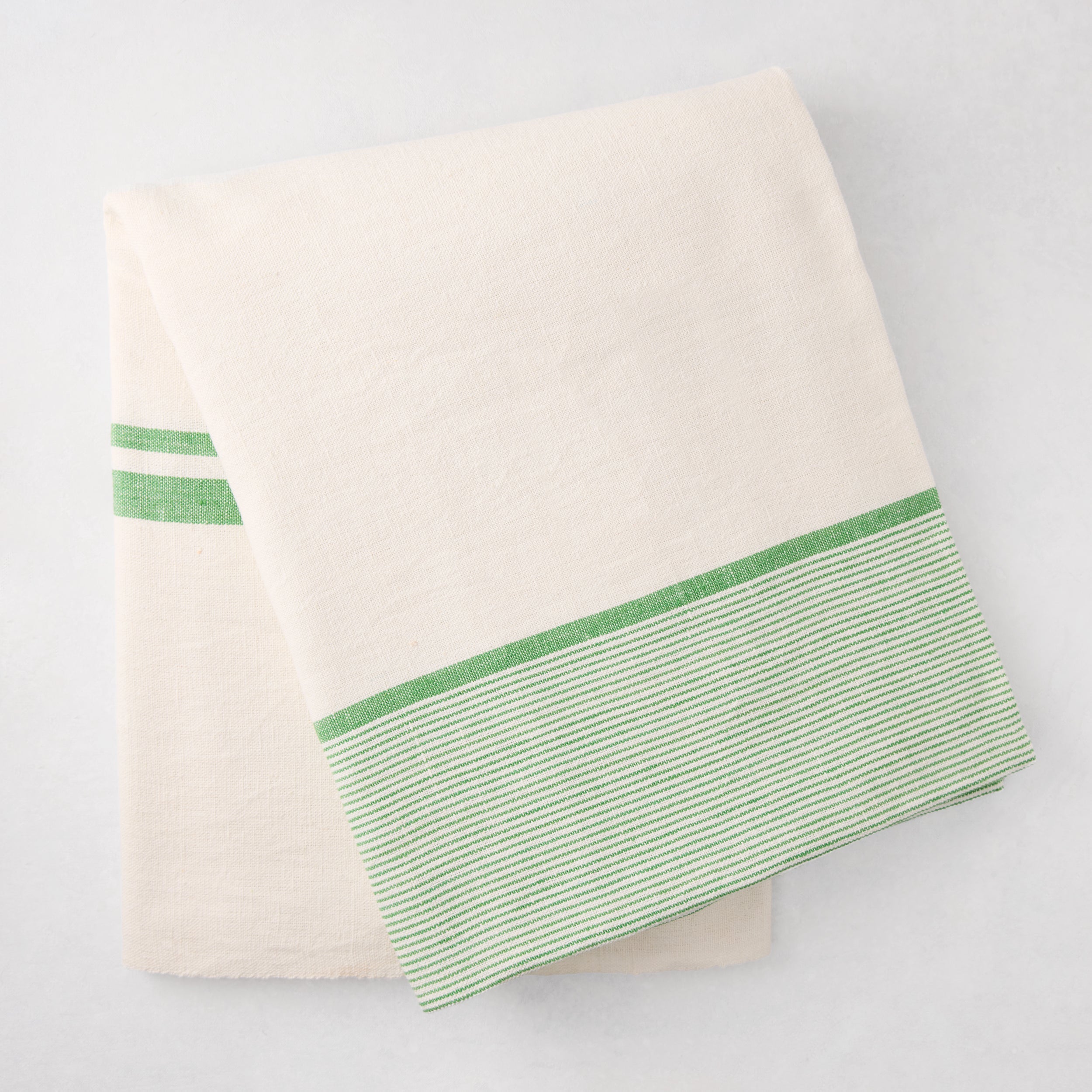 Make every meal feel like you're on a yacht with the Boat Stripe Tablecloth in Green. Featuring a print inspired by boat interiors, this tablecloth can turn any table setting into a trip across the water. Woven from a blend of washed cotton and linen, this tablecloth will drape easily over any table.