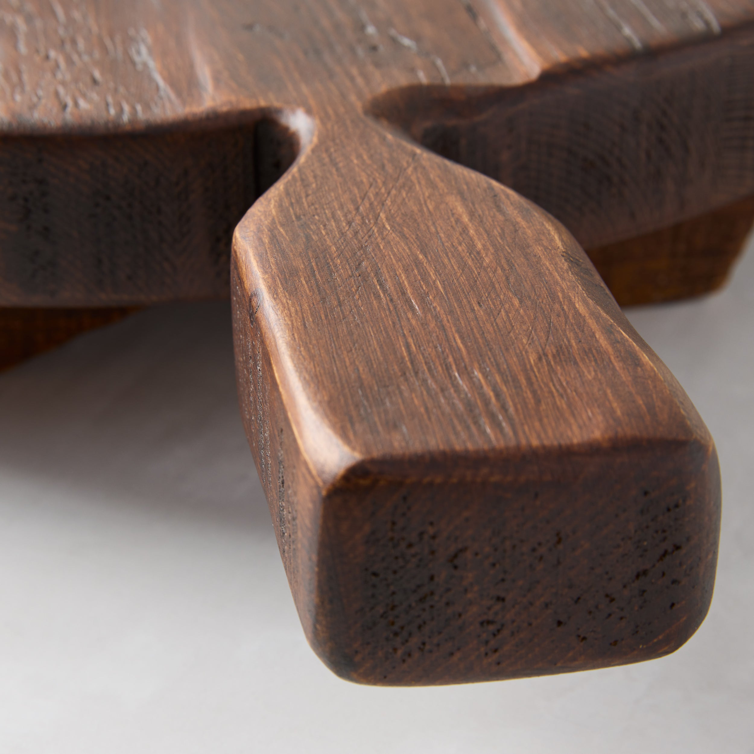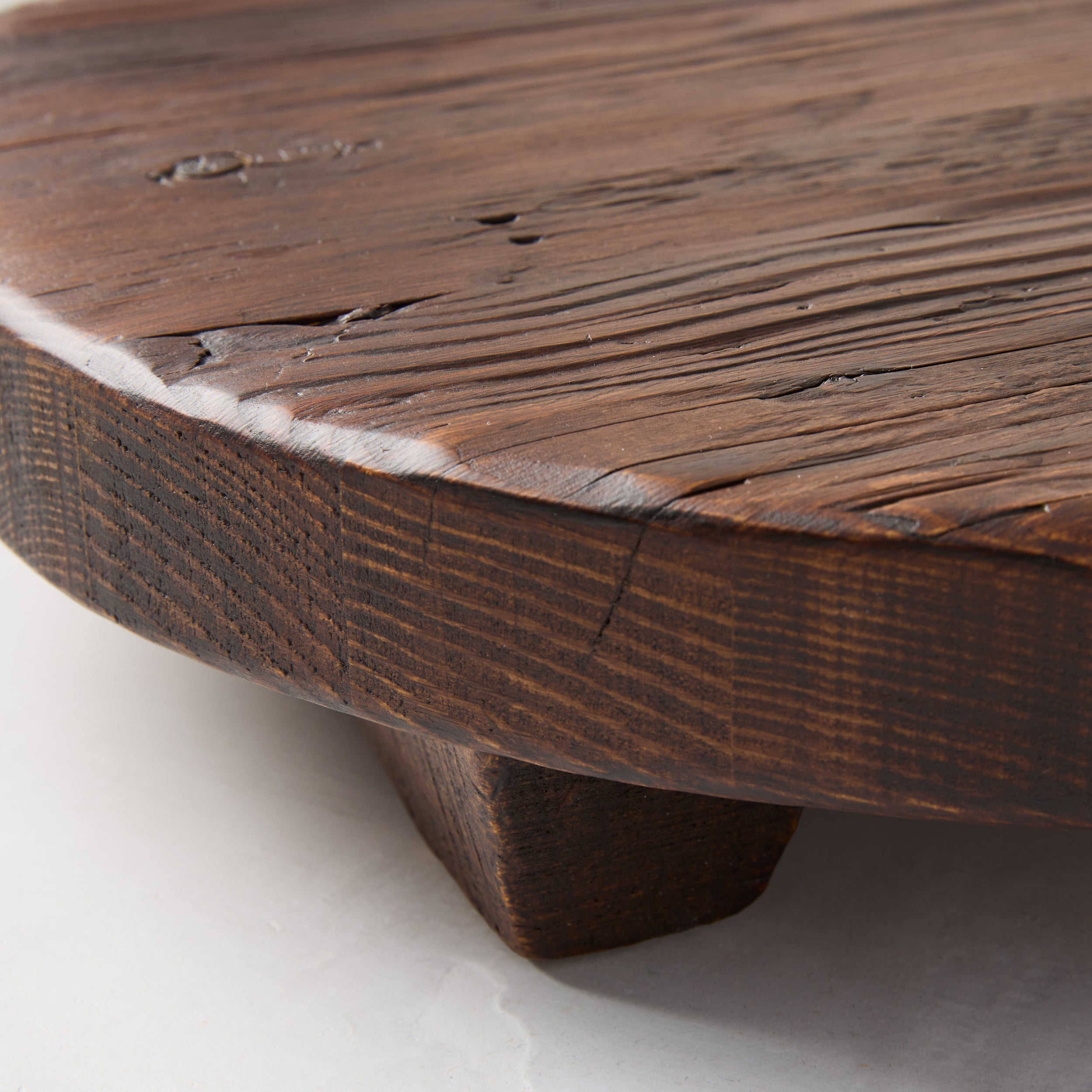The Saddle Round Footed Wood Serving Board is hand-carved from 19th-century European pine and finished with food-safe organic oil. It's perfect for entertaining and can be used to present charcuterie, cheese, tapas, and fruit. The character of the wood makes every board unique, with a warmth and richness that develops a patina over time. The footed design lets it double as a trivet for hot appetizers and dishes. Depending on your spread, Small Saddle Wood Serving Plank can serve and impress up to 6 guests, making it the perfect way to enjoy your favorite foods with family and friends. It is one of our best-selling serving boards for gifting and entertaining.