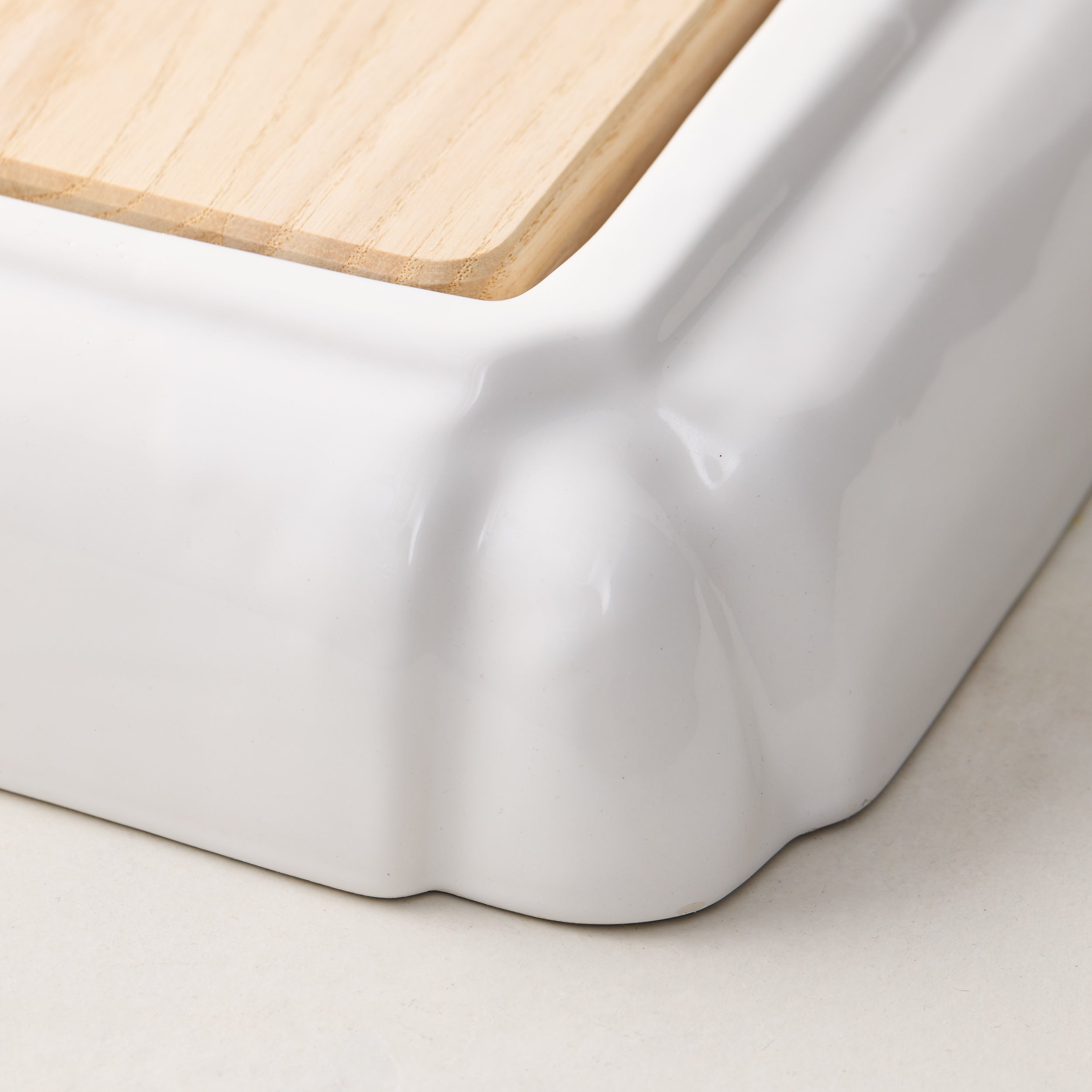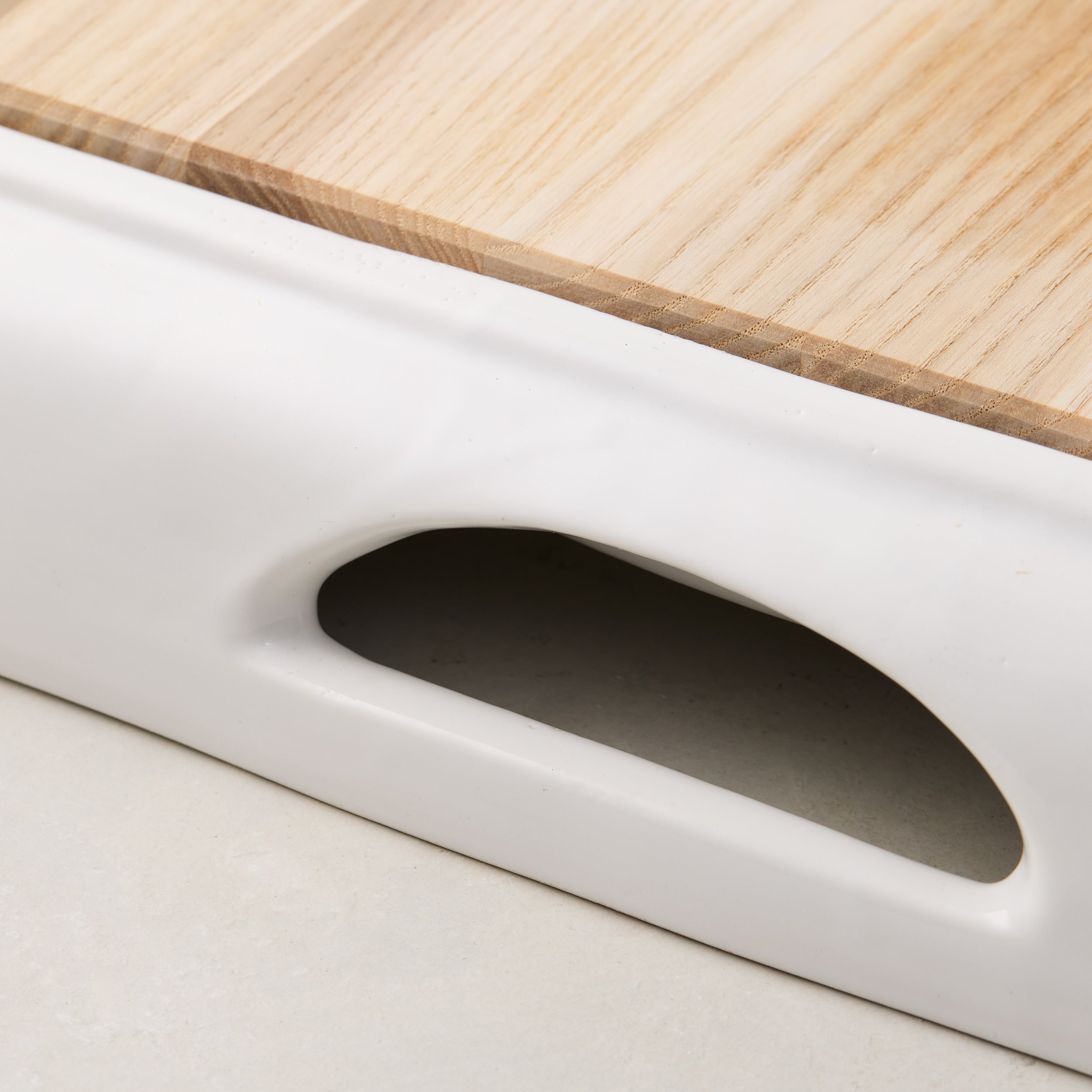 Function meets beauty with our White Ceramic Handled Cutting Board with Oak Wood. This versatile and modern board is perfect for prep and can serve up anything from appetizers to mains. Crafted with an oak wood surface, this board is perfect for chopping, slicing, and dicing ingredients while maintaining knife sharpness. The sleek, easy-to-grip ceramic handle allows for easy serving, making it a breeze to transition from kitchen to table.